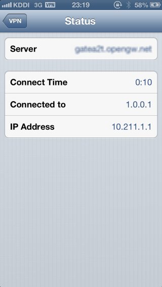 connect time on the status screen. Your private IP address