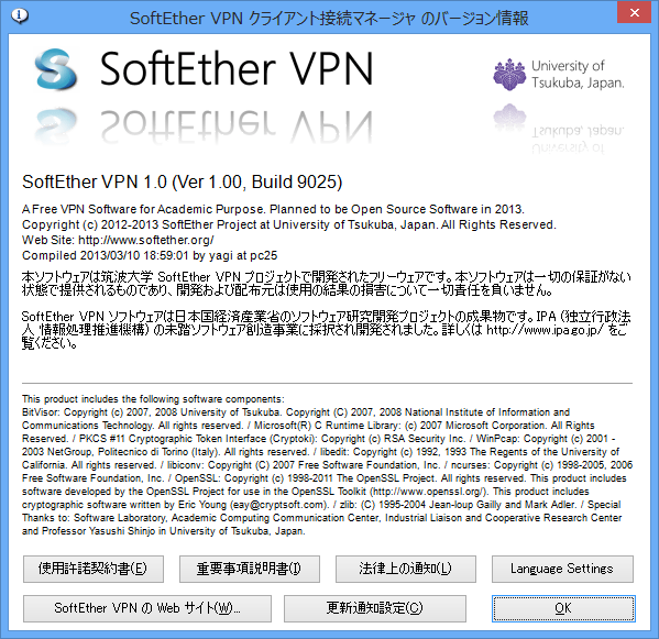 この節で述べる注意事項は、SoftEther VPN および VPN Gate